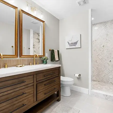 Discover Modern Elegance in Wilmington's Thriving North End Brooklyn Arts District! Step into luxury with this stunning, newly constructed townhome nestled in the heart of Wilmington's dynamic North End Brooklyn Arts community. Inside, every detail Impresses: Soaring high ceilings and gleaming hardwood floors throughout create an inviting and spacious ambiance. The open floor plan seamlessly connects the living spaces, perfect for both relaxation and entertaining. A chef's dream kitchen showcases quartz countertops, gold fixtures, a center island, and a chic coffee bar—a true hub for culinary creativity. This home offers: 3 spacious bedrooms and 2.5 baths, including a lavish owner's suite. A cozy family room featuring a modern electric fireplace. A welcoming front porch and a screened-in rear porch, as well as a concrete patio and fenced in rear yard ideal for outdoor gatherings. Retreat upstairs to a private sanctuary, complete with a spa-like bathroom featuring dual vanities, a luxurious tiled shower with dual showerheads, and ample space to unwind. The two guest bedrooms, equally impressive, boast high ceilings and beautiful hardwoood flooring.